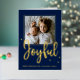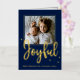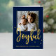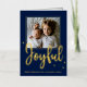 Joyful Typography Script Modern Photo Christmas Foil Holiday Card