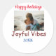 Joyful vibes happy holidays add family photo datec classic round sticker