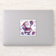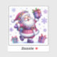 A delightful festive sticker features a jolly Santa in a vibrant violet outfit, joyfully holding colourful presents.