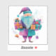 A cheerful, whimsical Santa Claus adorned in vibrant violet hues carries an array of colourful presents, embodying the spirit of Christmas.