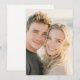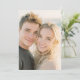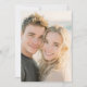 This wedding invitation features a warm, intimate portrait of two individuals smiling closely together, capturing a joyful and affectionate moment. The design showcases a soft bokeh background with natural lighting that highlights the subjects' relaxed expressions and connection. The colour palette includes gentle skin tones complemented by blonde and brown hair hues, creating a cheerful and inviting atmosphere. The photographic style emphasises realism and authenticity, making it perfect for couples seeking a personal and heartfelt touch for their special day.