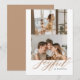 A two-photo flat holiday card features watercolor brush lettering of the word "Joyful".