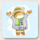 This little ginger cat pens his arms to feel the falling snowflakes and wears his mittens and coat to keep warm.