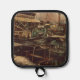 I ordered this product for my Mom as a gift and to check the product quality. It is a good thickness and great quality I am happy to report. She also advised that it will do a wonderful job in protecting her counters from hot pots and will last a really long time- durable. Printing is as expected and color is exactly her color of orange.