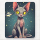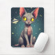Judging Sphynx Cat UFO Space Cartoon Art Mouse Mat