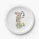 The Easter Bunny juggles the Easter eggs while the little chicken is the audience.