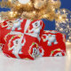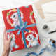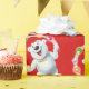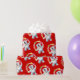 Juggling Polar Bear.Glossy giftwrap paper. Reds