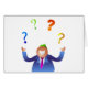 Cute illustration of a happy man in a suit juggling question mark symbols. Maybe he's there to answer all your questions and solve your problems. That would be nice. Image available on various gifts and products.