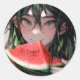Juicy Summer Watermelon Anime Girl Classic Round Sticker
