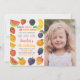 Add a splash of sunshine to your celebration with this juicy tropical birthday invitation! Featuring cheerful fruit graphics like pineapples, oranges, lemons, and bold tropical leaves, this vibrant design is perfect for a summer birthday, luau, or beach-themed party. Personalise with ease and make your child’s party unforgettable with fruity fun!
