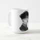 A Jujutsu Kaisen mug of the character of Megumi Fushiguro in black and white