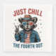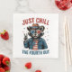 Peace sign waving, sunglass-wearing cute, cool & retro racoon "Just Chill The Fourth Out" red white and blue patriotic graphics for your Independence Day BBQ cookout or lake gathering..