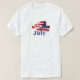 Large US flag in the shape of a 4 plus the word July. Available in various styles and colours of shirts. By D. Bennett from Balance America.