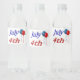 Celebrate the America's Independence Day with this water bottle label featuring July 4th in 3D blue and red text and red, white and blue balloons.
