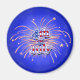 Golden fireworks with stars bursting in celebration behind US flag filled 4th of July lettering for magnet that is a fun gift for USA Independence Day. You may also enjoy cards and gifts with this bright 4th of July design available in my store. Original design by Anura Design Studio.