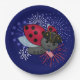 The holiday ladybug wearing a tricorne hat and waving the Betsy Toss flag with fireworks in the background for July 4th.