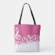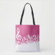 Jumbled Musical Notes Hot Pink and White Tote Bag