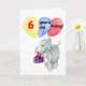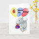 A birthday card for a 6 yr old with a handpainted baby elephant carrying a gift and balloons. 'Happy Birthday' inside.