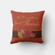This reversible 20"x20" throw pillow with an orange and brown textured-look band on it has a pile of autumn leaves on it in gold, burnt orange, brown, red, and green colours. The phrase "In Everything Give Thanks" is customisable, so change it to whatever you want. You can also pick the colour of the background by going in through the Customise button and then using the edit feature. If you have any requests, please email niteowlstudio@gmail.com.
