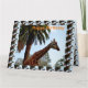 Pictured is a tall spotty Giraffe bordered with lots of the same image but smaller