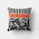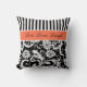 This chic orange, black, and white floral damask and striped pattern 20"x20" pillow has customizeable text that says "Live, Love Laugh" on it, but you can customise it however you want. If you have any requests, please email niteowlstudio@gmail.com.