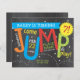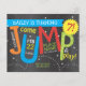 This birthday invitation is perfect for a jump party or bounce-house birthday party! Features bright primary colours on a chalkboard background accented with dots and stars. Contact us if you need this design applied to a specific product to create a matching item! Thank you so much for viewing a DoodleLulu by 2 june bugs design!