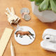 Original artwork of a jumping bay Thoroughbred horse by designer/illustrator Carolyn McFann on quality cards, postage and gifts for horse lovers.