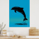 Jumping Dolphin Poster – Black Silhouette on Blue
