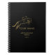 Notebook template in gold colour ideal for horse care, horse training, veterinarian services.