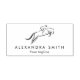 Rubber stamp template in black colour ideal for horse care, horse training, veterinarian services. This elegant design shows jumping horse and your name and is completely customisable.