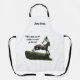 Jumping Horse & Jockey In Green, Apron. Digital Art. "If you climb into the saddle, be ready for the ride." Here's to the not-so-easy rides. Steeplechase racehorse & jockey in green. Fully customisable; make it your own. Edit the wording to your needs, or remove the text entirely.