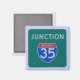 Photograph of a junction sign for interstate 35 with customizable blue background. Image copyright 2013 by Margaret E. Cmelik
