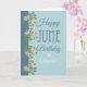 A pretty June Birthday Card to personalise, with a border of pink Dogroses on a two-tone blue background; part of the Posh & Painterly "Rosy Posy" collection.