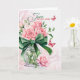 Gorgeous pink roses in a vase with a green ribbon on this summer inspired birthday cards, featuring flower which represents a JUNE birthday.