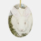 Ceramic oval ornament depects a full colour sketch of a pretty white rabbit baby still in the nestbox.
