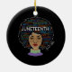 Powerful ornament featuring an African-American woman with texts related to Juneteenth and black rights. Inspired by Afrocentric pride, empowerment, and cultural heritage. Ideal for women who embrace strength, self-love, and identity. Perfect gift for Black History Month, Juneteenth, Kwanzaa, cultural events, or everyday empowerment.