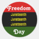 Are you looking for Juneteenth Stickers? This Juneteenth Sticker that works best on Round or Square Stickers with the Pan African Flag. Juneteenth, also known as Freedom Day, Jubilee Day, Cel-Liberation Day or the Black Fourth of July, is an American holiday that honours June 19, 1865. Be sure to check out the other Juneteenth products in my store Gkrew Productions in the Melanin Selection Collection