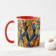 Coffee Mug is shown in a festive African art print in celebration.