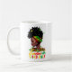 This ceramic coffee mug is shown in a great Juneteenth Vibes Only women art print.
