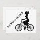 Auf dieser Postkarte sehen Sie eine junge, zielstrebige Dame die genau weiß wo Sie mit dem Fahrrad hin will denn "Der Weg ist das Ziel" Diese Postkarte ist ein wenig im"oldstyle" Design und ähnelt einem Scherenschnitt aus der guten,alten Zeit. Überraschen sie doch Ihre Fahrradbegeisterten Freunde mit einer schönen Postkarte.