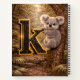 Cuddle up to learning with this absolutely adorable jungle alphabet notebook featuring the charming letter K. The hardcover front showcases a stunning 3D gold-trimmed letter K paired with a sweet adult koala clinging to a eucalyptus tree in a golden jungle setting, while the back cover displays lowercase 'k' with the most precious baby koala joey—creating an irresistible educational tool that children can't help but love. This deluxe 8.5" x 11" spiral notebook brings Australian wildlife charm to alphabet learning.