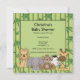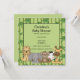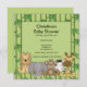 Adorable Jungle Animal Baby Shower gender neutral invitation featuring a an elephant, lion, monkey and giraffe on a green and jungle leaf frame background. Just customise with your information and you're all set to go! Matching items available in our shop. Perfect for a baby girl or baby boy baby shower. ©ScrappinDoodles