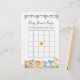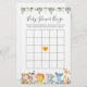 Jungle animals themed baby shower bingo game card features a watercolor safari/jungle animals illustration and watercolor greenery eucalyptus garland and elegant handwritten style font.
