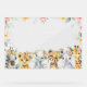 Add a personal touch to your birthday celebration with these stylish and memorable party items! Design features jungle animals (giraffe, zebra, lion, elephant, cheetah, rhino), hibiscus flowers and eucalyptus leaves.