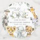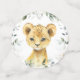 Add a personal touch to your baby shower celebration with these stylish and memorable party items! Design features jungle animals (giraffe, zebra, lion, elephant, cheetah, meerkat, rhino) and eucalyptus leaves on white background.