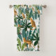 Jungle cat and leaves pattern bath towel set