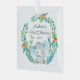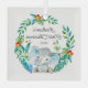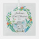 Cute baby's first Christmas ornament the sweetest little elephant framed with watercolor jungle leaves.