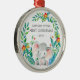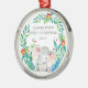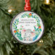 Cute baby's first Christmas ornament the sweetest little elephant framed with watercolor jungle leaves.