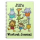 Keep track of your workouts in this journal! A cute bunch of jungle animals wearing leotards are doing some exercises in this cute jungle gym. Cute cartoon jungle-themed image. Original design by Christie Black of Creations from the Heart.