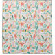 This seamless pattern features playful jungle animals in pastel colours. We can see several monkey orangutan in coral orange, eating bananas, next to toucans, cockatoo, snakes and sloth. All surrounded with bright tropical leaves in green, pink, yellow and orange tones.